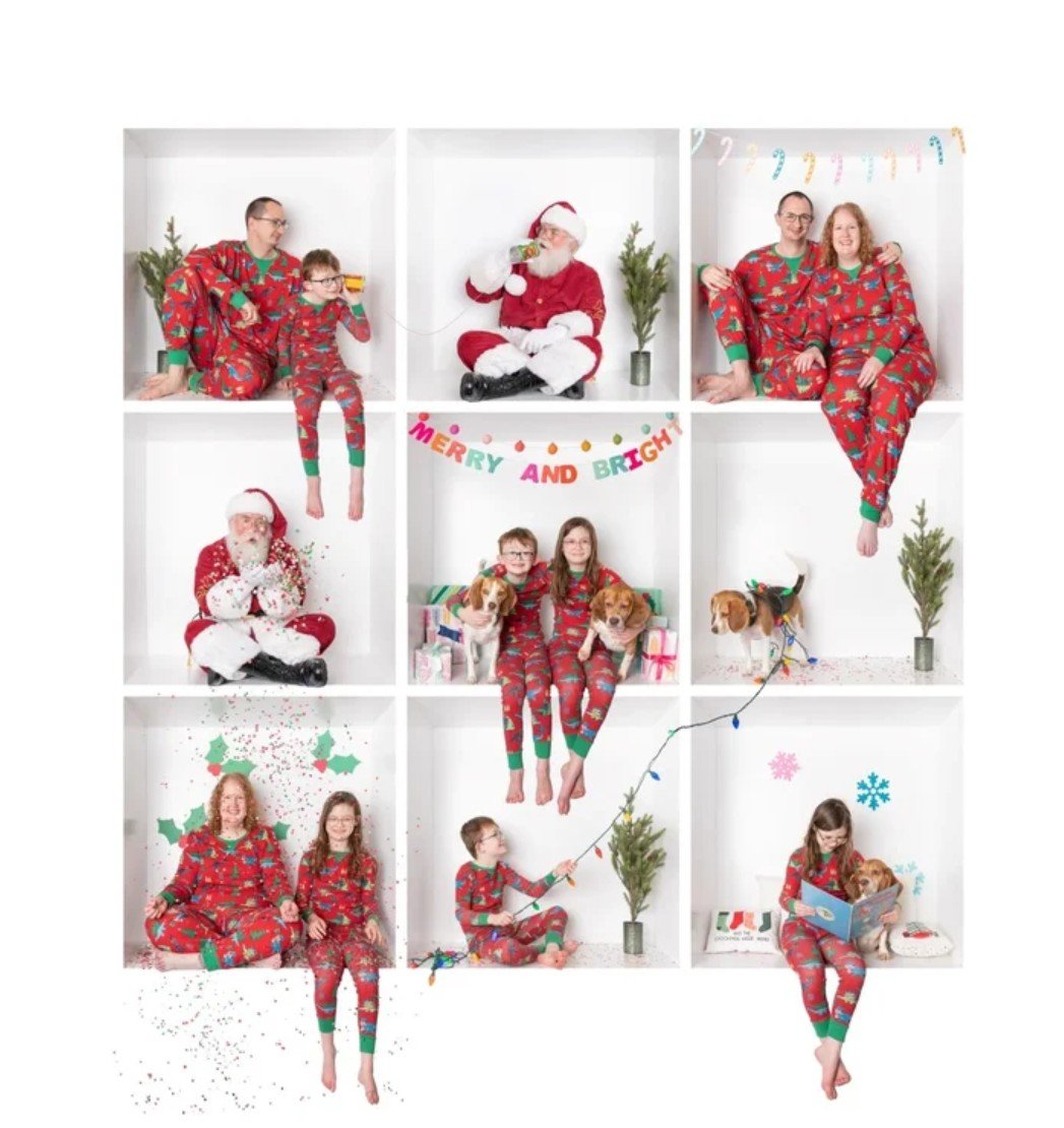 Santa WILL NOT be present at this session, he is photo shopped in. You can opt for a Santa free collage as well!